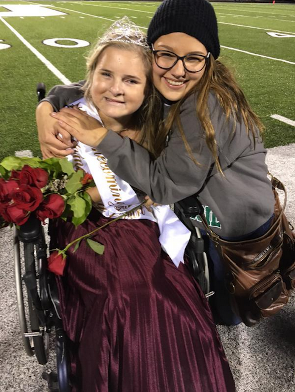 Well there is one thing that makes Kate so special- she is wheelchair bound. Kate, 17, has spent her life battling a rare neurodegenerative disorder called ataxia telangiectasia (A-T for short), which impairs her movement, coordination, immune system, and DNA function. She typically uses a wheelchair, but proudly accepted her crown by walking up to the podium with a little help from the homecoming king.